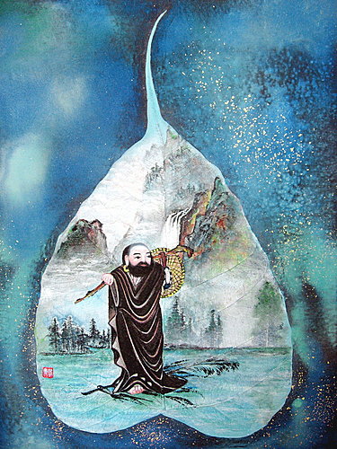 達摩祖師.“柯思名老師作品”菩提葉畫中的背景就是用青金石。