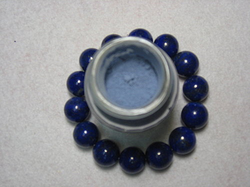 | 介紹 青金石早在古巴比倫時代就已開採,是當時的重要寶石. 使用青金石的歷史相當久遠,中東地方兩河流域一帶的古文明遺物中,就發現有大量青金石所做成的飾物.甚至直到羅馬時代,還是以青金石做為藍色寶石的代表,甚且將Sapphire(象徵天空,天國,現為藍寶石的英文稱呼)之名給了青金石. 青金石其實是多種礦物組成的礦石.主要組成有天藍石,方鈉石,藍方石及黃鐵礦等.產出的形式則為藍色礦石帶有金色斑點或白色紋理. 由於組成礦物的比例不同,青金石的顏色與紋理都會有些許差異.青金石的本體藍由於產地不同而呈深淺不一的色調,主要由組成的藍色礦物與白色方解石所佔的比例而定.其上的紋理則有由黃鐵礦(Pyrite)形成的金黃色斑點或由白色方解石(Calcite)形成的白色紋路.一般而言,上等的青金石的本體色呈適中而飽和的藍色,而同時以其上具金色斑點者較受人喜愛. |
